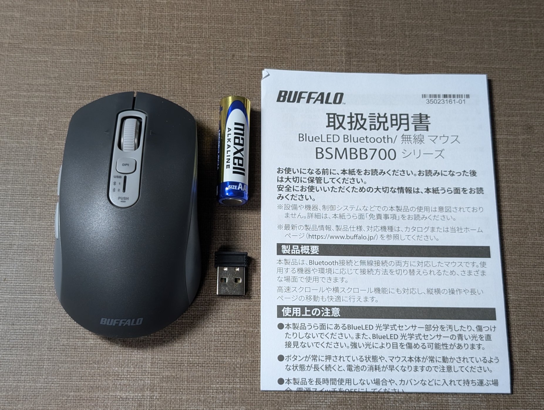 バッファローBSMBB700BKは、本体機能としてはゲーミングマウスのような突出した機能性があるわけではない、標準的なオフィスワーク向けBluetoothマウスです。