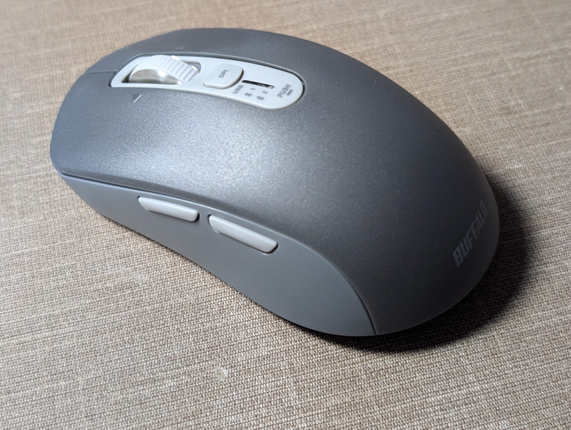 バッファローBSMBB700BKはちょっと便利感が強めのスタンダードなオフィスワーク向けBluetoothマウス。ゲーミングマウスやハイエンドなエルゴ対応マウスのような、突出した機能性はありません。
